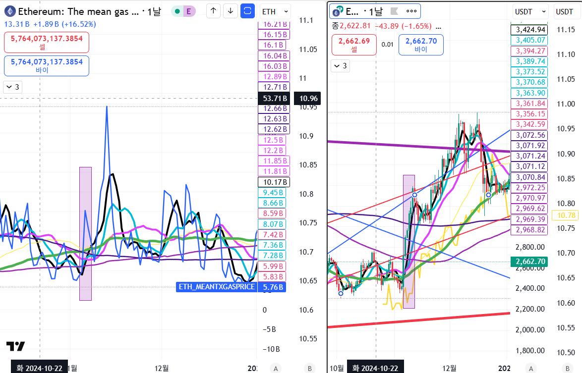 이더리움의 가스비가 오르는 경향이 있습니다.