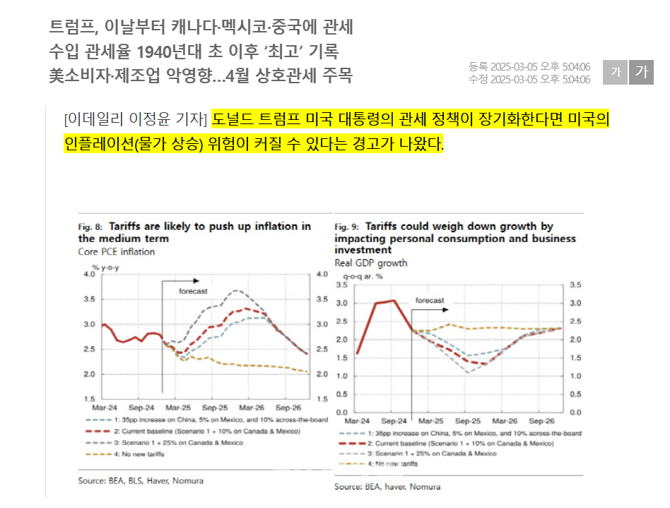 그렇기 때문에 이미 물가가 높은 와중에 관세 정책을 시행하면