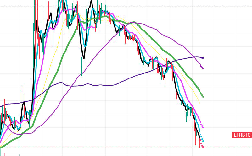 그리고 ETH / BTC 환율은 21년 이후 최저를 기록했습니다.
