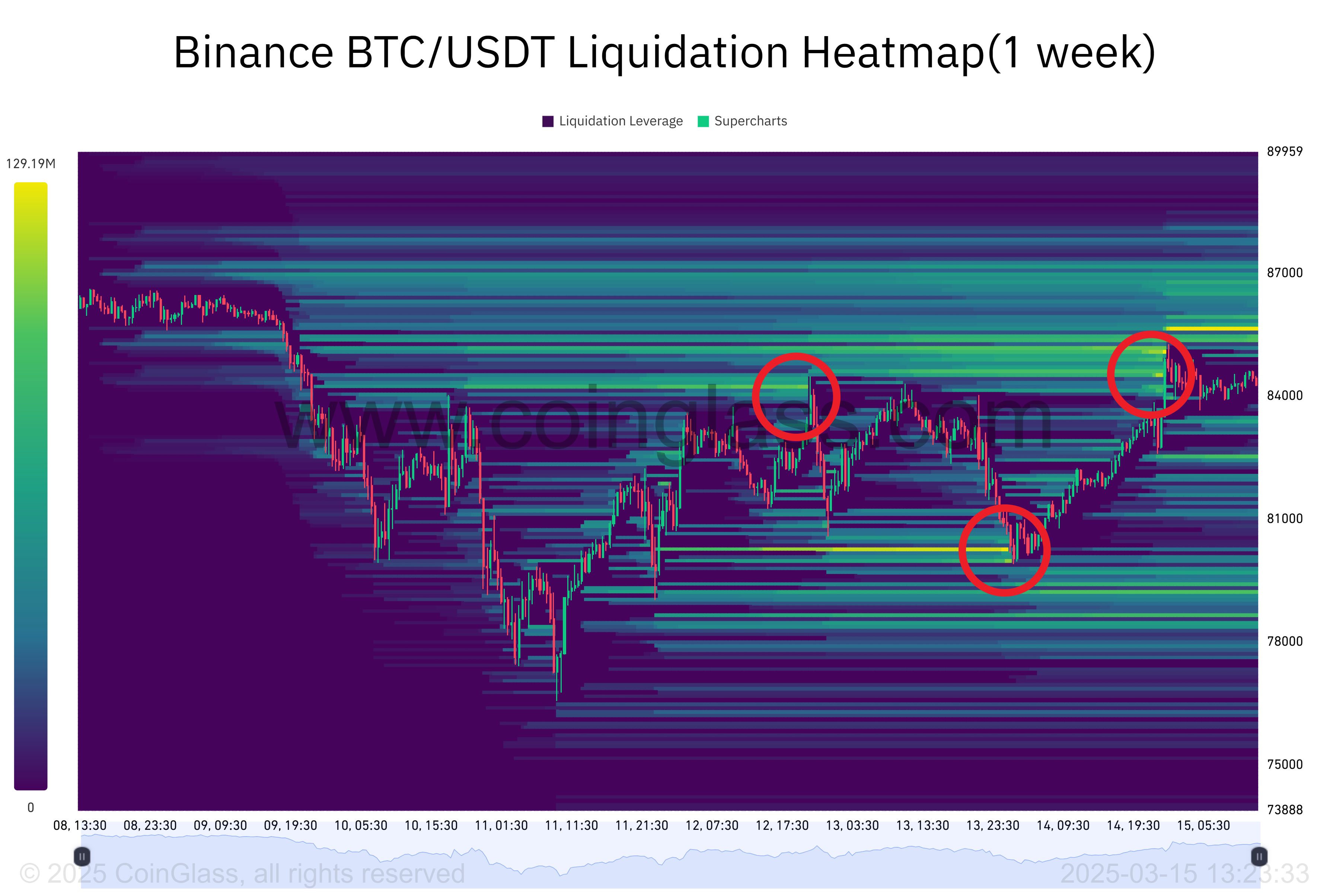 그리고 BTC 선물 청산맵을 보시면, 청산 물량이 많이 쌓인 영역은 꼭 터트리고 가는 것을 볼 수 있습니다.